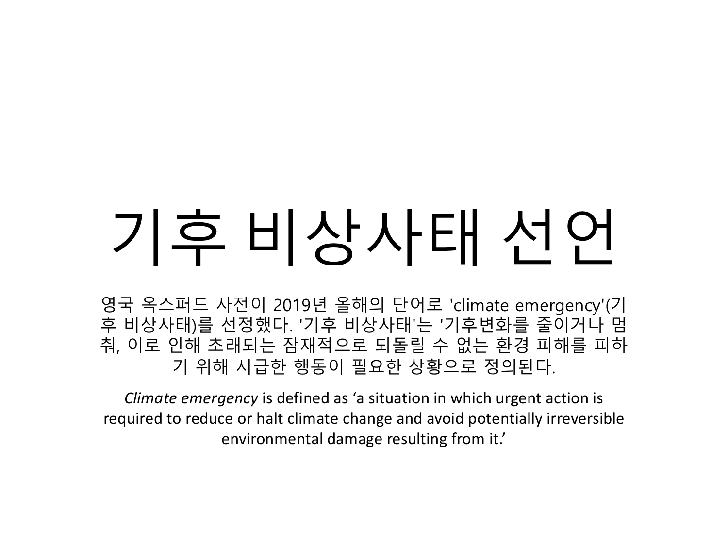 | [서명] 국회는 기후비상선언 결의하라! (0) | 2020.02.25 |