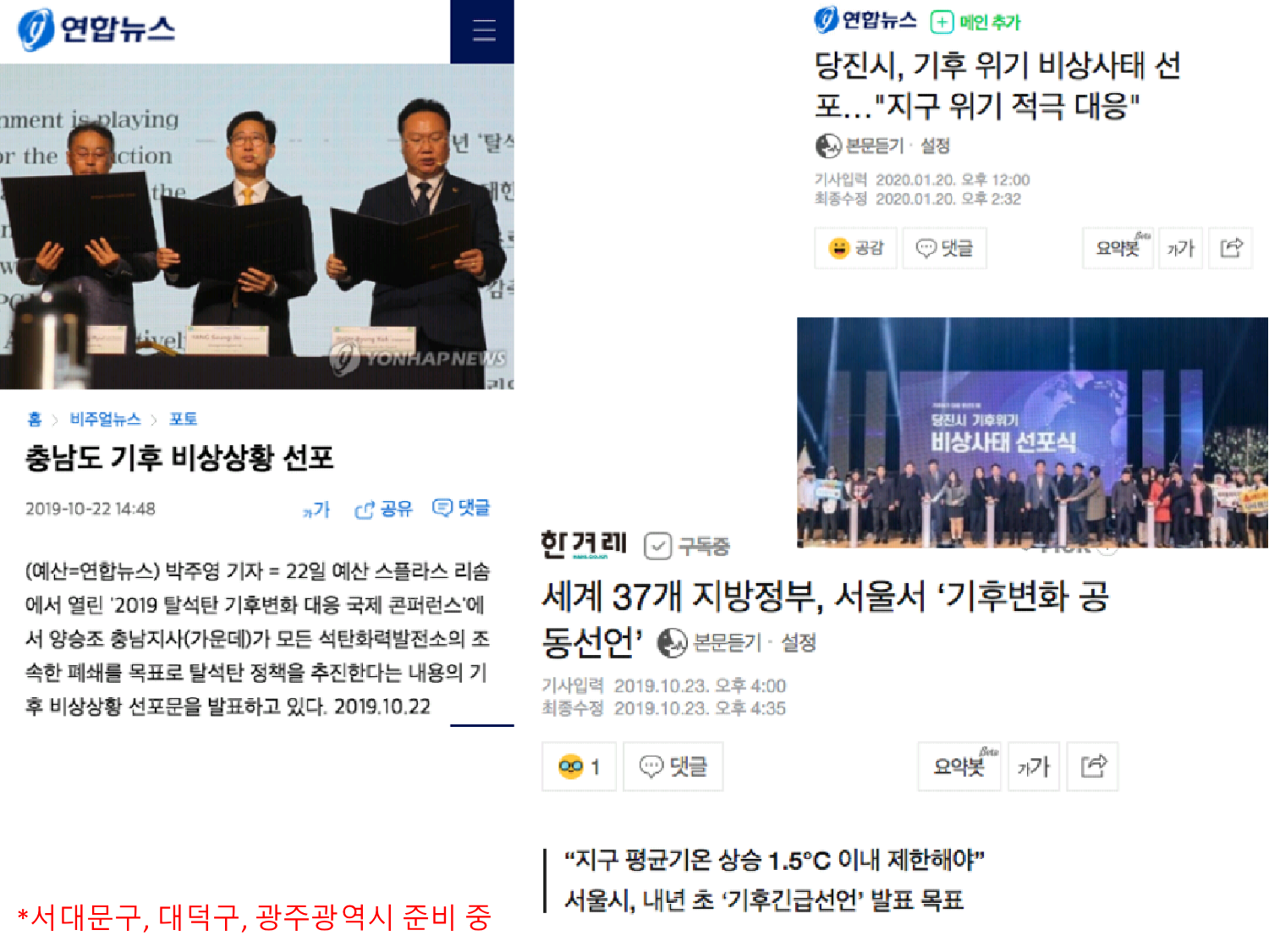티브로드 뉴스 https://youtu.be/7bGLmzoqrcw 티브로드 뉴스 인천뉴스 영상 https://youtu.be/Wvp3SadDBvA 인천뉴스 인천TV 기사 http://www.incheonnews.com/news/articleView.html?idxno=121350 "기후 비상사태..
