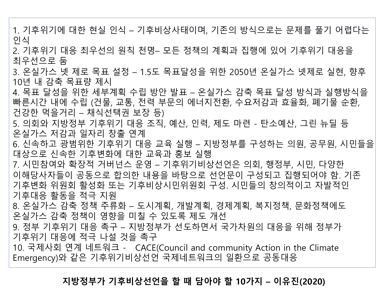 1. 인천시와 인천시교육청, 인천시의회는 기후위기를 인정하고 <기후 비상사태>를 선포하라.