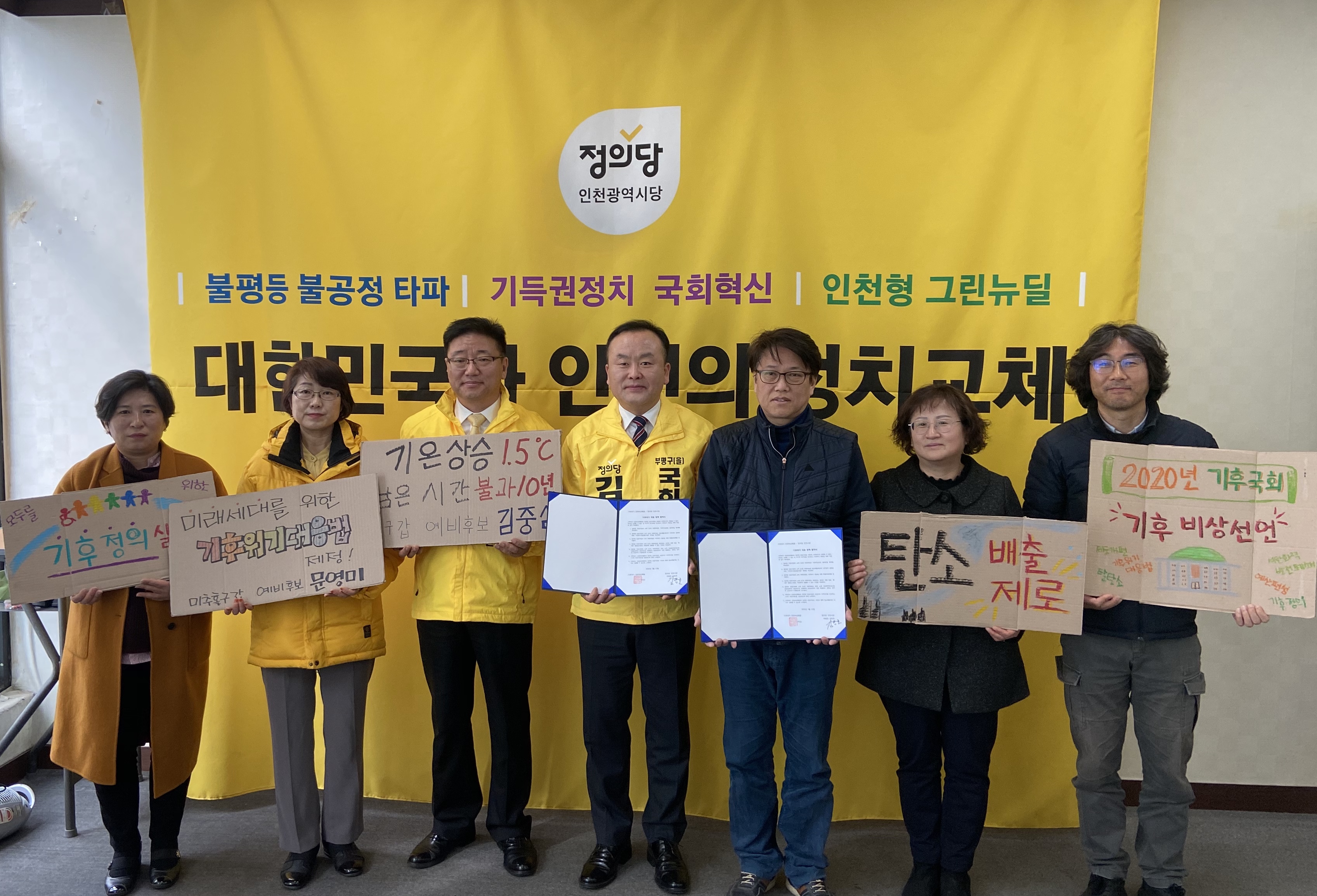 정의당 인천시당, 기후위기 인천비상행동과 정책협약식 - 인천투데이